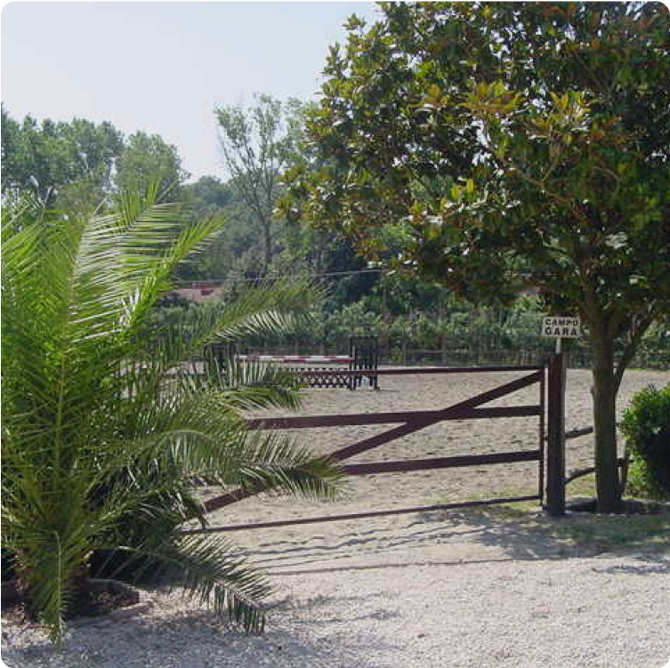 Il terreno presenta una forma “a esse” (S) che da una zona collinare con 70 piante di ulivo degrada lievemente lungo un pendio fino ad una zona pianeggiante di circa 2 ettari dove si trovano un campo ostacoli, un campo di lavoro e alcuni paddocks.